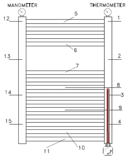 ** Elektrikli ürünler aşağıdaki tüm noktalardan tek tek thermal kamera ile zamana bağlı ölçüme tabii tutulmakta bu sayede elektrikleme işlemi için kullanılacak ısıtıcıların doğru güçlerde (watt) seçimi sağlanmaktadır. Doğru güç eşleşmesi, ürünün Hammam Radyatör tarafından vaat edilen garanti süresiden çok daha uzun ömre sahip olmasını sağlamaktadır.