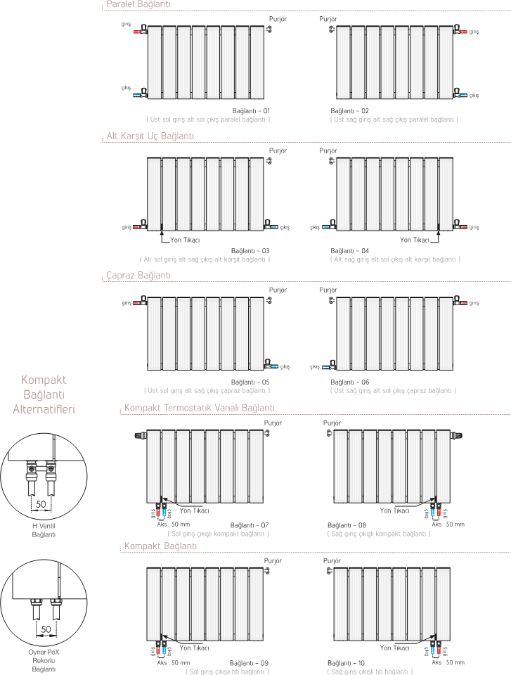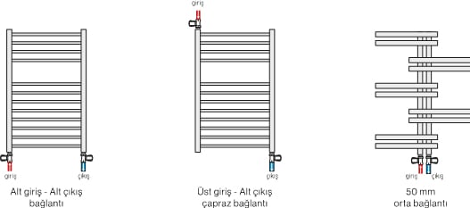 tasarım radyatörlerimiz aşağıdaki bağlantı şekillerine uygun üretilmektedir.