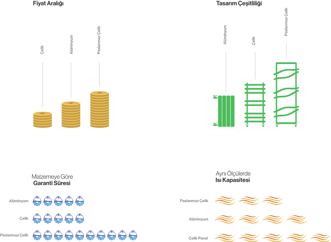 ve Radyatörleri standart sıcak su sistemi ile çalışan bütün radyatörler gibi